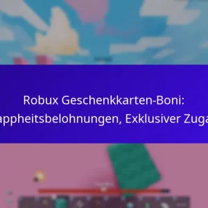 Robux-Geschenkkarten-Boni bieten Spielern zusätzliche In-Game-Währung, wenn sie Geschenkkarten für Roblox kaufen. Diese Boni verbessern das Spielerlebnis, indem sie den Nutzern ermöglichen, mehr Gegenstände und Upgrades zu erwerben. Erhältlich bei verschiedenen Einzelhändlern und Online-Plattformen, können diese Aktionen Ihre Kaufkraft erheblich steigern, was es zu einer großartigen Möglichkeit macht, mehr Robux für Ihr Geld zu erhalten.